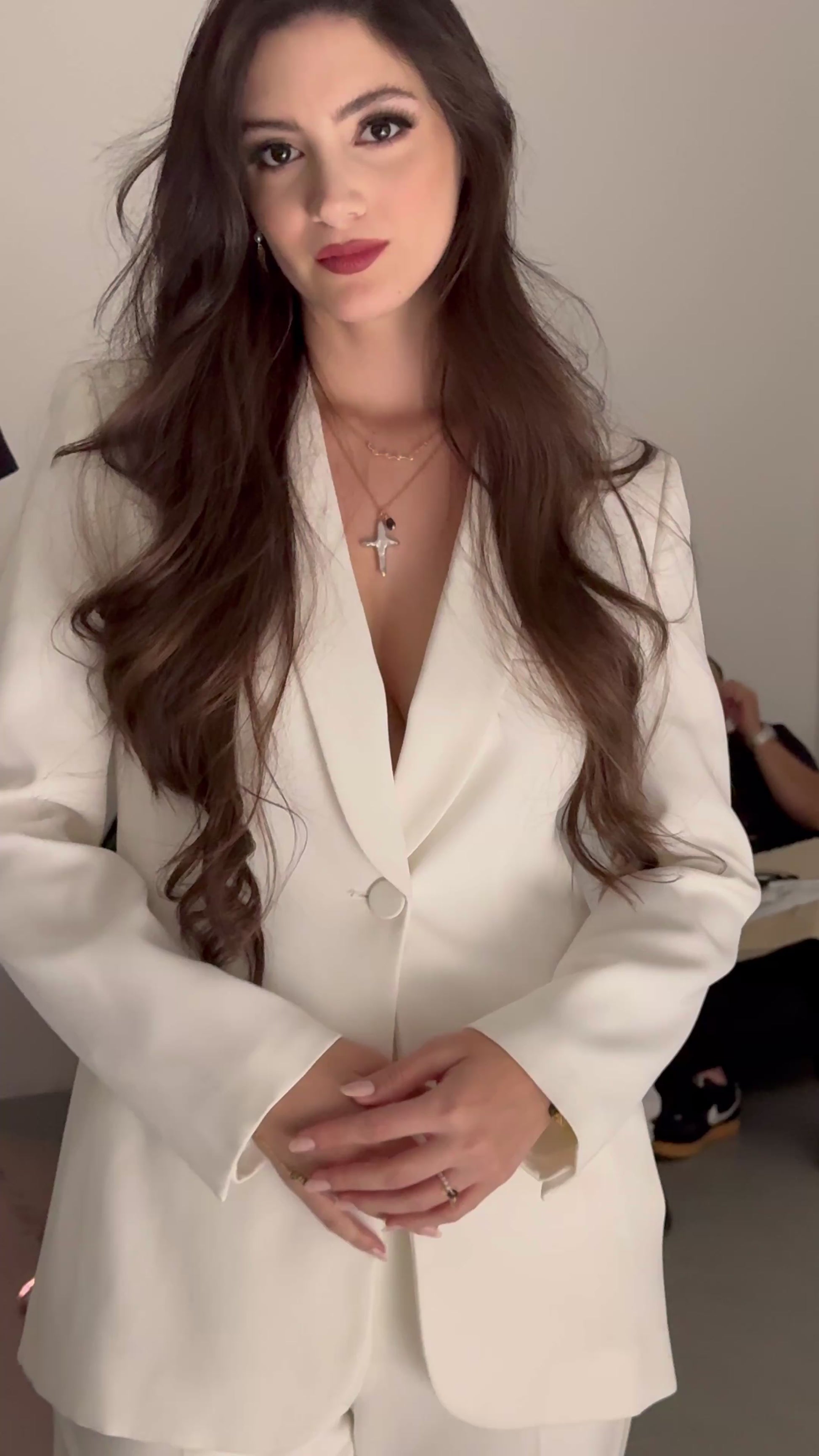 Adorn yourself with the exquisite Camille necklace from our new holiday collection. This dainty 18k gold filled chain features a stunning pearl cross adorned with a deep red garnet stone. Elevate your look with this luxurious and one-of-a-kind accessory.