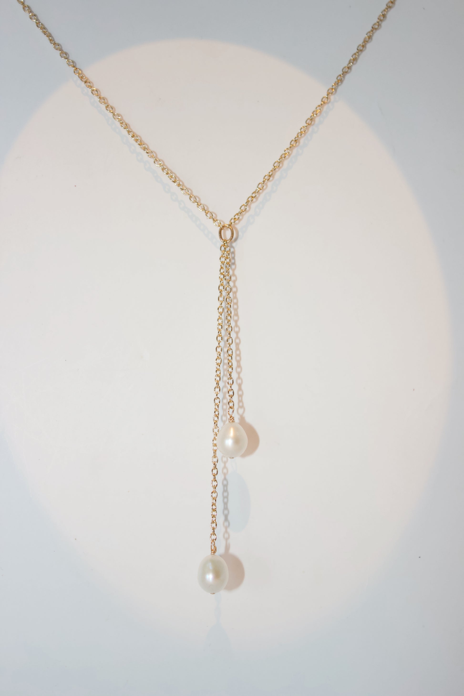 Featuring 2 genuine pearls hanging on an 18k gold filled dainty chain, the perfect holiday spirit necklace for all year long. Delicate enough to shine through day and nights. This is the one you’re looking for.